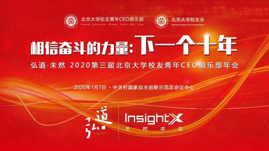 (图片为第三届北大青年CEO俱乐部年会活动现场) 2020年1月7日,第三届北京大学校友青年CEO俱乐部(以下简称: 北大青年CEO俱乐部)年会隆重举行。 本届年会在北京大学和海淀区对外联络服务中心的指导下,由北京大学校友会主办,北大青年CEO俱乐部承办, 弘道资本、未然资本、北大创新评论、北京大学创新学社、天使汇、创客总部、创业公社、天眼查、舍得酒业、唐派集团、博清科技、霸蛮、智唐科技、爸爸的选择、好孕妈妈、嗖嗖身边、泰楽美、小马吉米、三个农夫、旭燕堂、暴娱互动、爱培优、火星科学盒、烯牛数据、映客、VPHOTO、盛开互动、胤牌科技、漾柏医美、天下生日一起过等大力支持 。