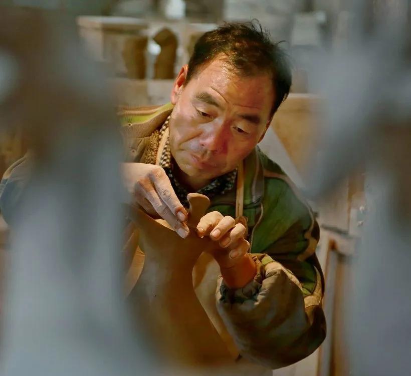 烧制失败后,将次品全部砸碎销毁 在完成了相关资料准备后,我开始了漫长而又艰辛的创作历程,其中“力学平衡”和“烧制技艺”在当时是我认为尤为难以突破却又必须突破的两大关卡。 “叶里藏花一度,梦里踏雪几回;一约即订,万山无阻”从形体的整体神韵到泥胎的材料配方、再到颗粒细度、泥浆浓度、坯体轻重、烧成制度、釉彩试验和搭配等方面进行了诸多实验和调整,一次次失败,一次次琢磨,一次次改进,一次次总结,好在皇天不负苦心人,经历了近百次失败后,终于解决了在钧瓷厚胎厚釉系统下,单腿承重、三足悬空、历经1300度高温形体不变,这一困扰钧瓷界多年的难题。这件作品也成为了我从钧之路上里程碑式作品。