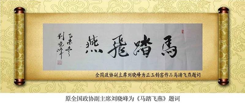 钧瓷版 《马踏飞燕》一经问世,便在全国引起了极大反响,十二届全国政协副主席刘晓峰为其欣然题词,原中国陶瓷工业协会理事长刘垚称赞其“传承祖国优秀陶瓷文化,展现国宝钧瓷高超技艺”;全国工商联民间文物艺术品商会会长宋建文称赞其“钧瓷之峰,大师高度”;中国收藏家协会陶瓷委员会荆志忠主任称赞其“力擎千钧,独树一帜”。 在向原作致敬的同时,为了更好地展现原作的艺术神韵,我在保持主体风格不变的前提下,对局部进行了一些修饰,使奔马显得更加飘逸洒脱,优雅俊美,这就是我们一直以来倡导的“师古而不泥古”。在釉彩的选择和搭配上,对奔马我选用了炉钧金斑釉,因为这种釉彩,沧桑古朴又蕴含雅润,能够很好地展现古代青铜器的质感和色彩。那种廖若星辰的金斑,既有强烈的视觉冲击,又注入了财富吉祥文化的内涵,而燕子我则选用了紫红色的窑变釉,沉稳厚重,寓意紫气东来。 这件作品达到了型为釉添彩,釉为型传神的艺术效果,实现了型与釉的完美结合,把中国优秀的传统文化、钧瓷文化、吉祥文化很好地融为一体。